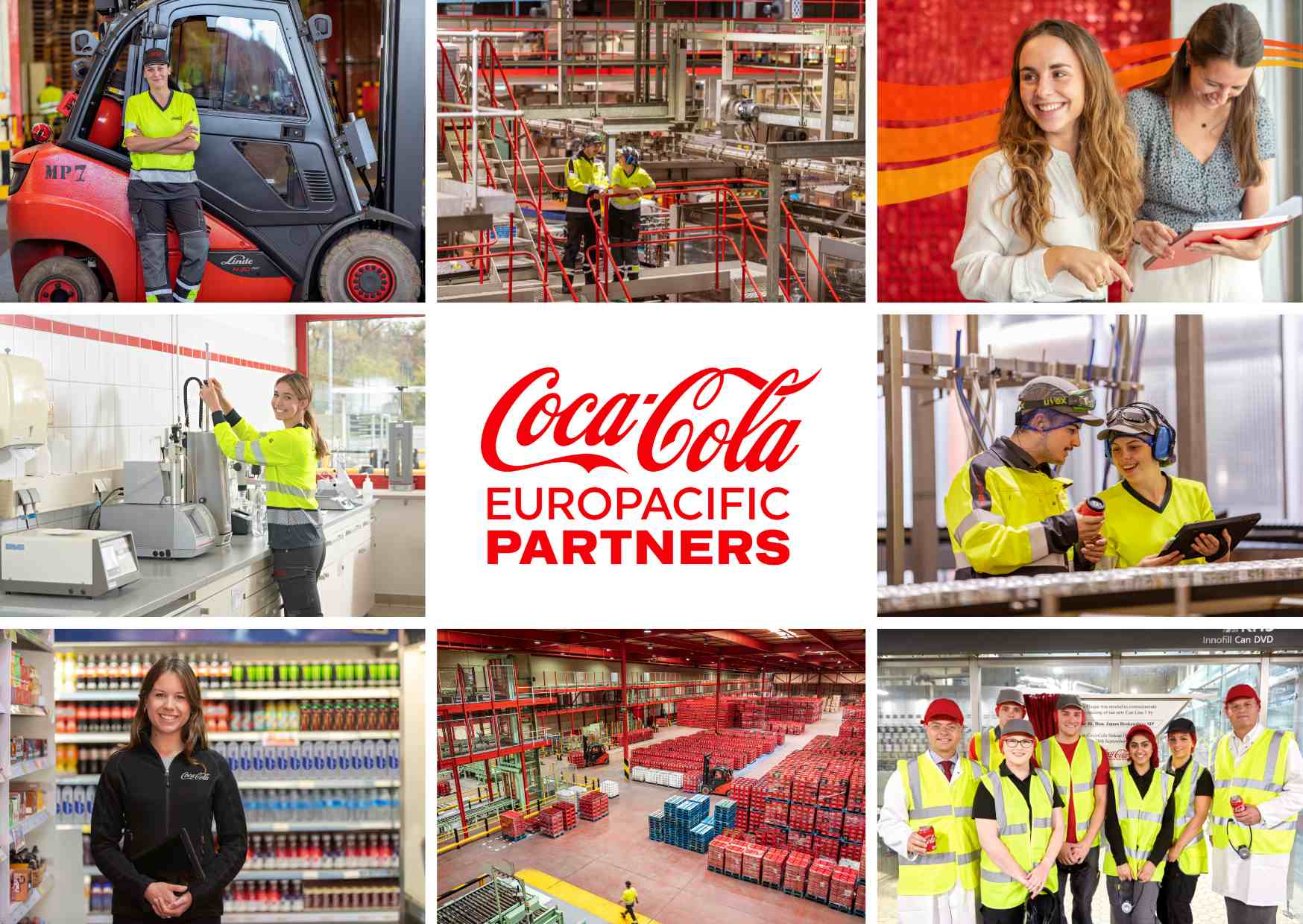 Ohne uns gibt’s weder Coke, Fanta noch Sprite im Supermarktregal. Klingt verrückt, ist aber so. Denn wir sind Coca-Cola Europacific Partners Deutschland (CCEP) und verantworten bundesweit die Abfüllung und den Vertrieb von Coca-Cola Markenprodukten.